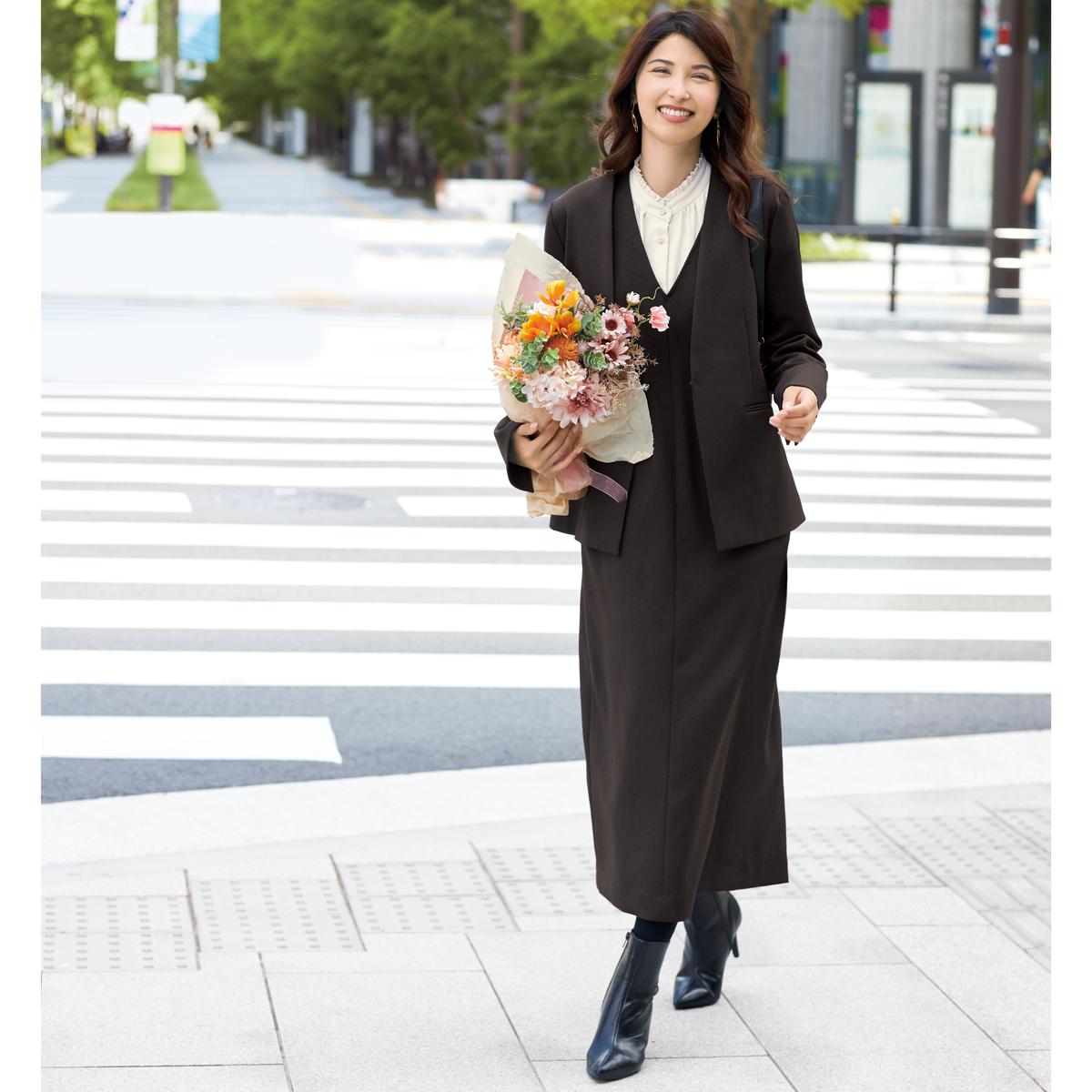 全方向に伸縮するので、着心地がラク。シワになりにくく型崩れしにくいのもうれしいポイントです。