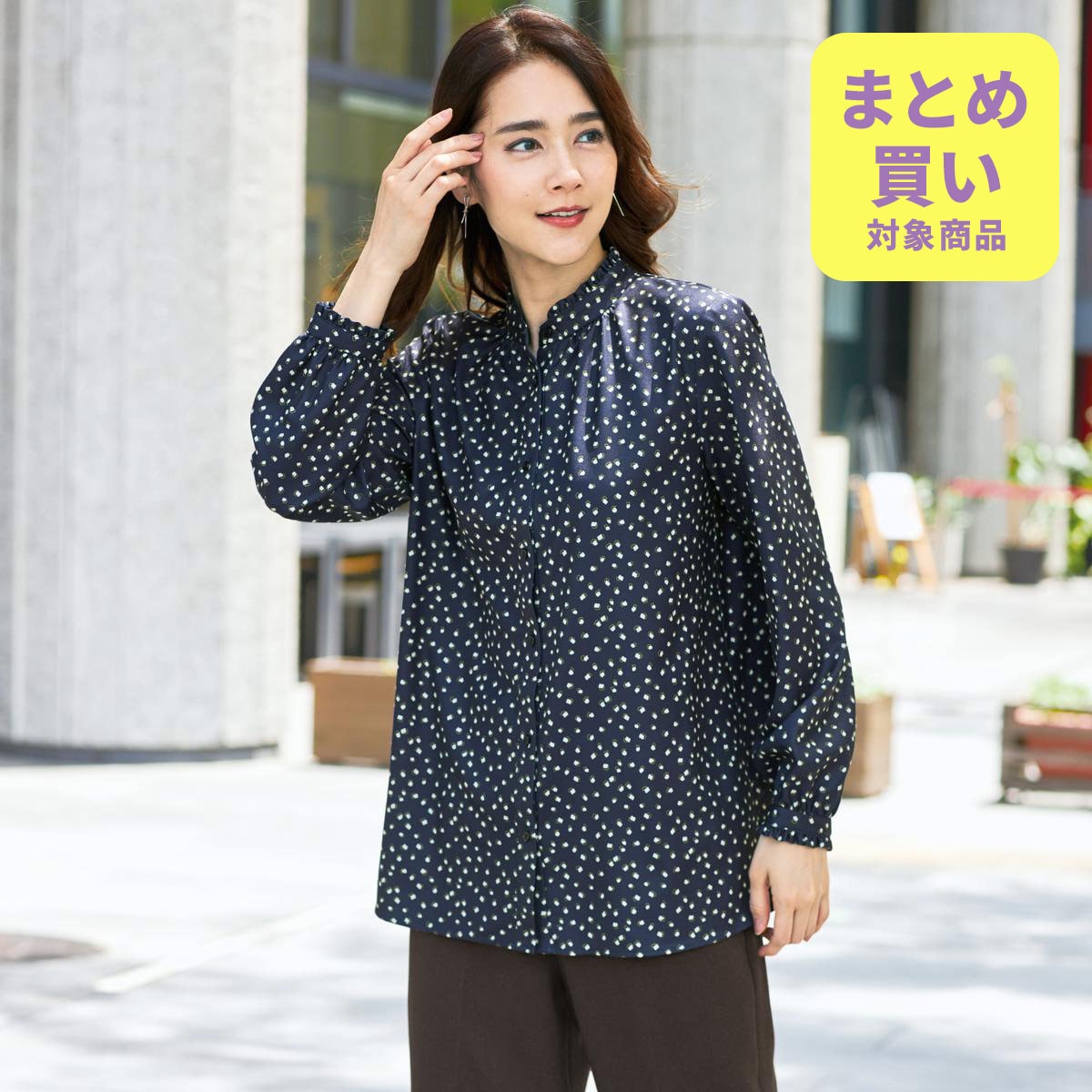 -お買い得ポイント-程よく伸びて快適な着心地の華やかブラウスです。-デザイン-フリル衿がアクセントに。-素材特徴-全方向に伸縮するので、着心地がラク。シワになりにくく型崩れしにくいのもうれしいポイントです。
