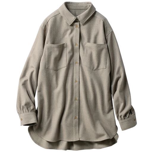 ベージュ系(ヘリンボーン柄) 両面起毛素材が心地良くあたたか ライトアウターとしてもバランスよく着こなせる、程よいゆとりの長め丈。内側もあったか素材で、温もりに包まれる心地です。