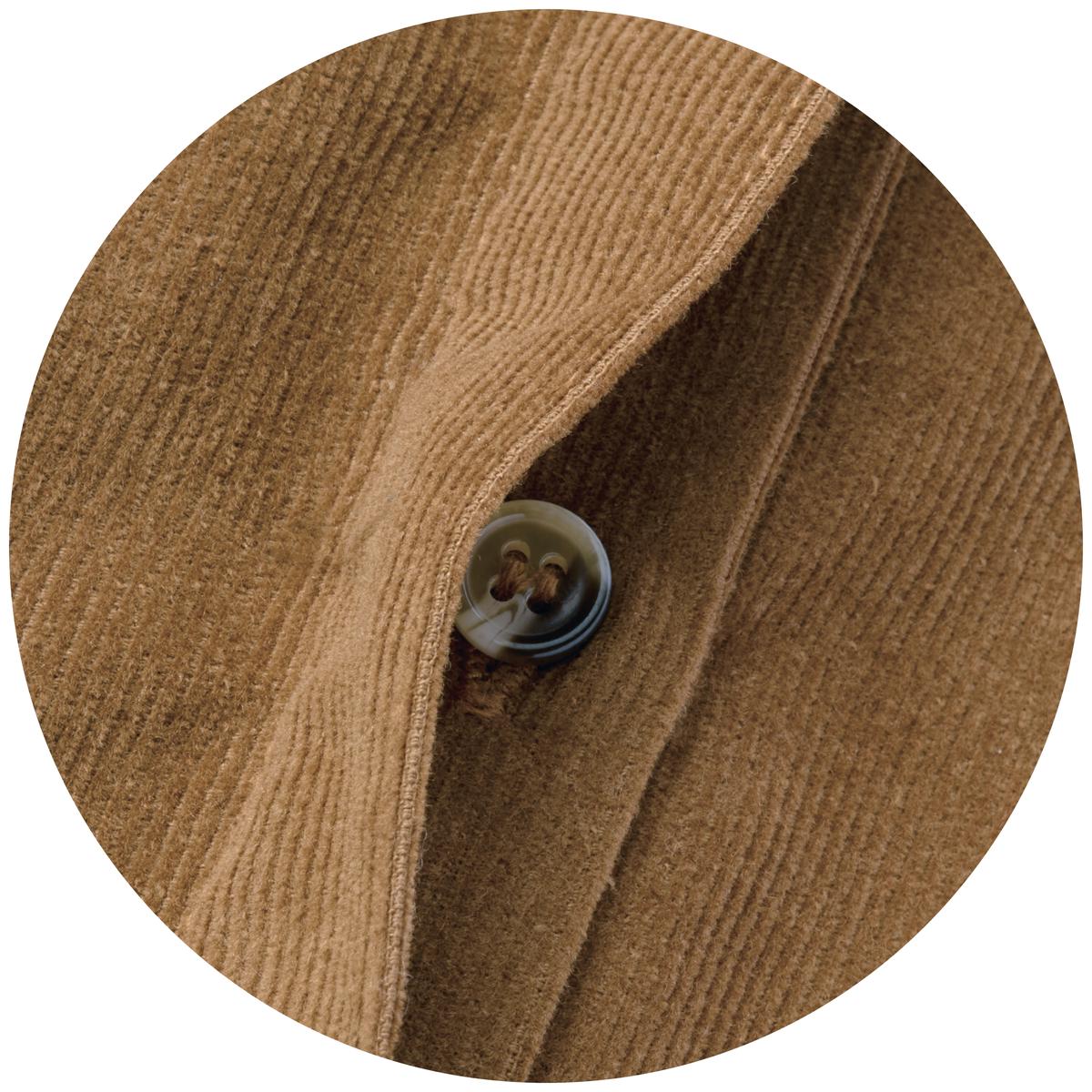 細畝のコーデュロイが、ソフトで心地いい肌ざわり。綿100%のシャツコールでボリュームをおさえたシルエットになります。