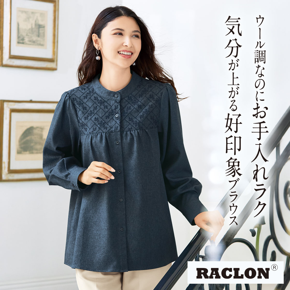 心がときめく繊細なディテール。ウール調なのにお手入れラク、気分が上がる好印象ブラウス。