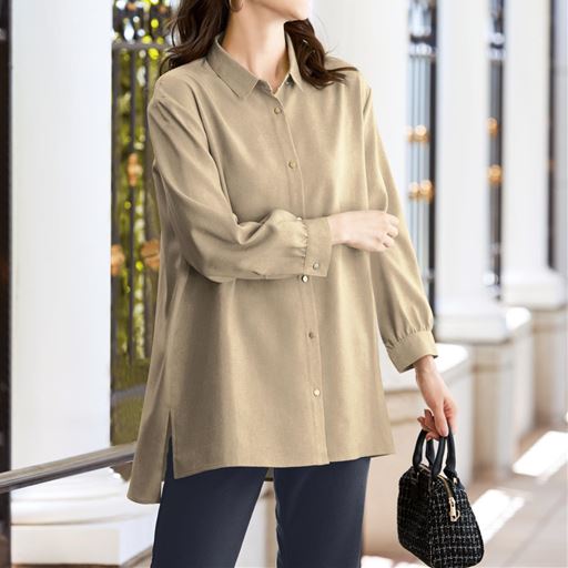 -お買い得ポイント-カタログ通販でラクロン商品が買えるのはセシールだけ!!洗濯してもシワになりにくいイージーケア素材。-デザイン-裾に深いスリットを入れて羽織り使いもサマに。ゆったりしたシルエットながら、カフス調の袖口が手首をシャープに見せます。-素材特徴-コットンのようなナチュラルな風合いが特長。ポリエステル本来の速乾性を保ちながら、さらっとした着心地を持続します。