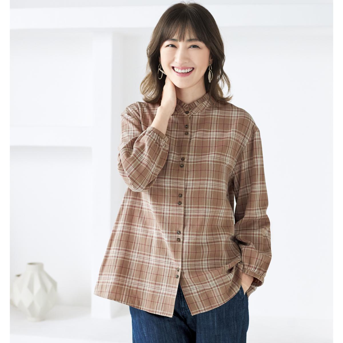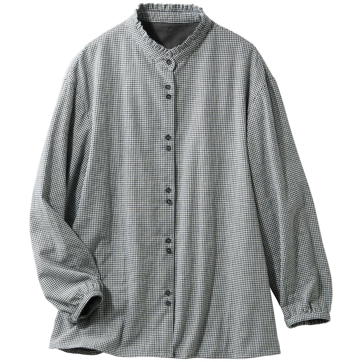 -お買い得ポイント-さらっと1枚で着用でき、カジュアルにもモードにも楽しめるブラウスです。 -デザイン-ダブルボタン使いや小さめのフリル衿が大人可愛い。家事もラクにできる袖口内側はゴム仕様。-素材特徴-ふんわり柔らかな肌触りの心地良いダブルガーゼ素材。