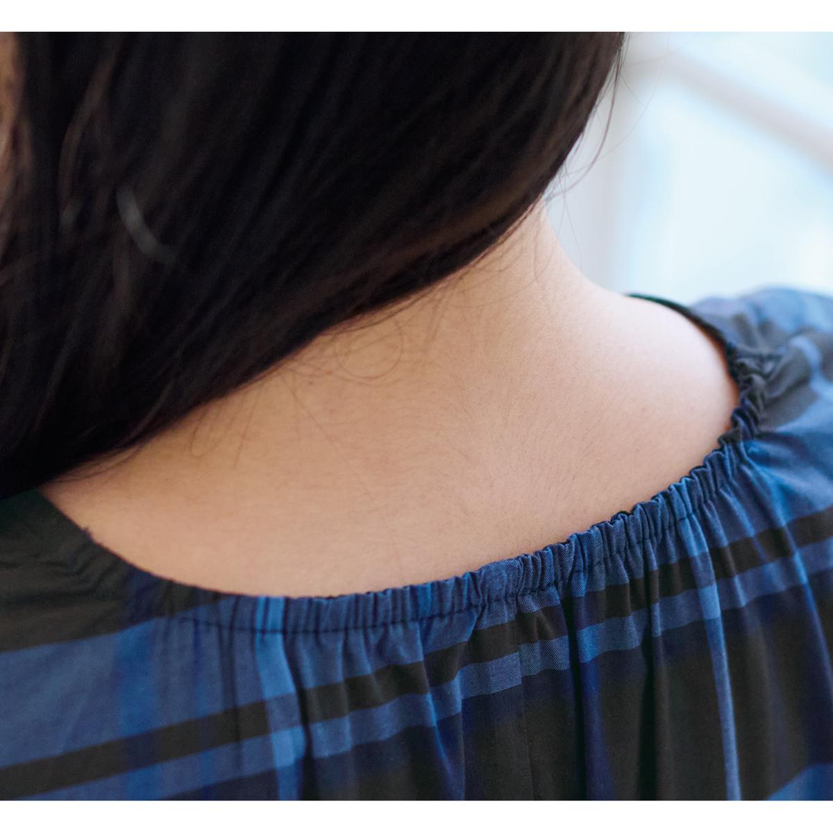 後ろ衿がゴム仕様なのでそのまますっぽり着られる。