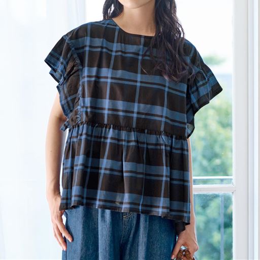 -お買い得ポイント-Tシャツの着やすさとブラウスの上品さを両立。夏の肌をやさしく包み込み、うるおい感のある心地よさが楽しめます。-デザイン-ふんわりギャザーで二の腕や腰まわりをカバー。後ろ衿がゴム仕様なのでそのまますっぽり着られます。下着のチラ見えを防ぐ脇見え防止仕様。-素材特徴-コットンベースにレーヨンを混ぜて肌なじみ良くやさしい着心地。