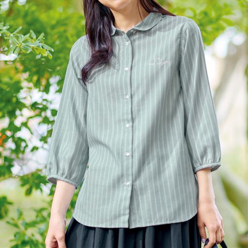 お買い得ポイント-エルクのかわいい刺しゅう入りのシャツです。普段着はもちろん、ちょっとしたお出かけにも重宝します。-デザイン-ちょこんとした丸ちび衿がアクセント。左胸にエルクのかわいい刺しゅう入り。-素材特徴-ナチュラルな風合いのさらりと涼しい麻混素材。