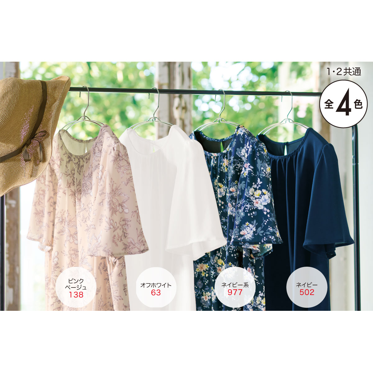 左からピンクベージュ、オフホワイト、ネイビー系、ネイビー