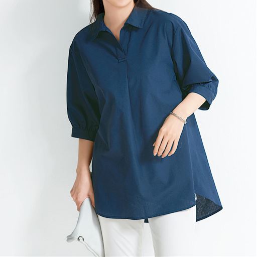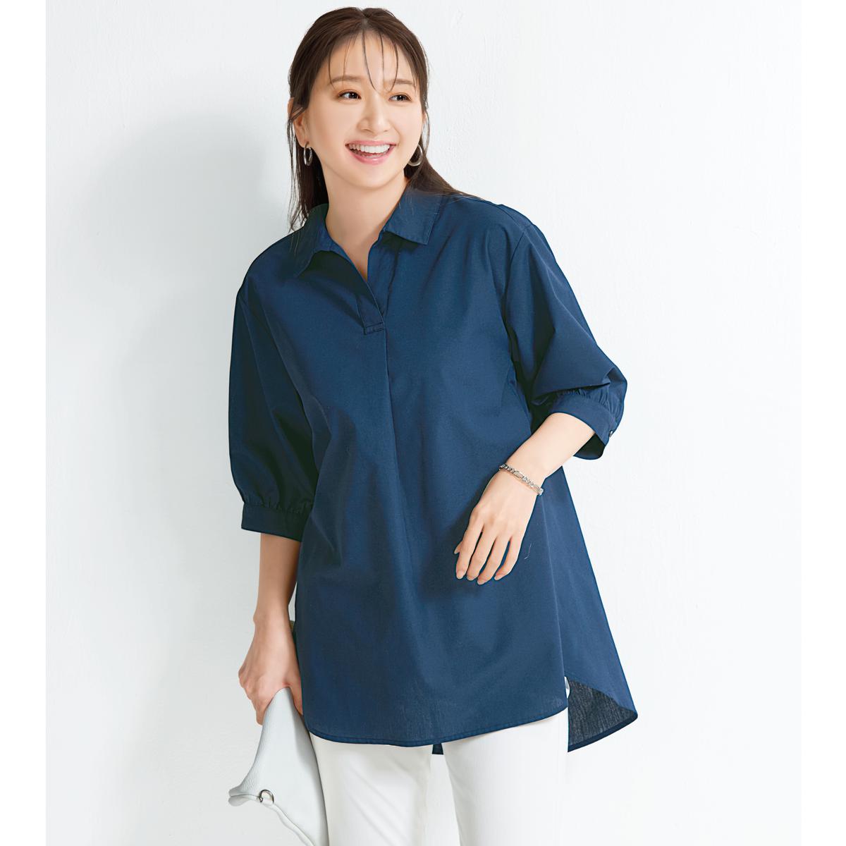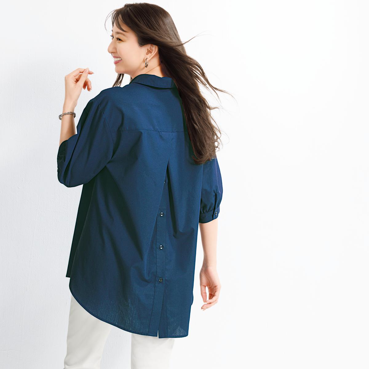 -お買い得ポイント-ゆったりとしたシルエットで、背面のタックが上品な印象を与えます。「後ろ姿もおしゃれで、手入れも簡単、着心地が良い」という大人の女性向けの機能派シャツです。-デザイン-タックや飾りボタンが後ろ姿をおしゃれに。やや前に寄せた脇切り替えが上半身を華奢に見せます。-素材特徴-ポリエステル本来の速乾性を保ちながら、よりコットンタッチな風合いに。さらっとした着心地で洗濯してもシワになりにくいイージーケア素材です。