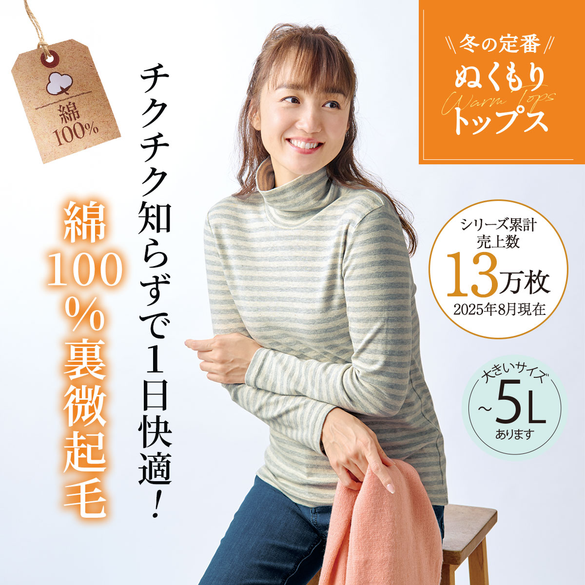 -お買い得ポイント-寒さを感じやすい首まわりを優しく包むルーズネック。程よい厚みで体のラインが出にくくすっきり着られます。-デザイン-程よいフィット感のあるルーズネックで寒さをガード。アウターと合わせやすく、重ね着のアクセントに!-素材特徴-綿100%裏微起毛素材で1日快適に過ごせます。