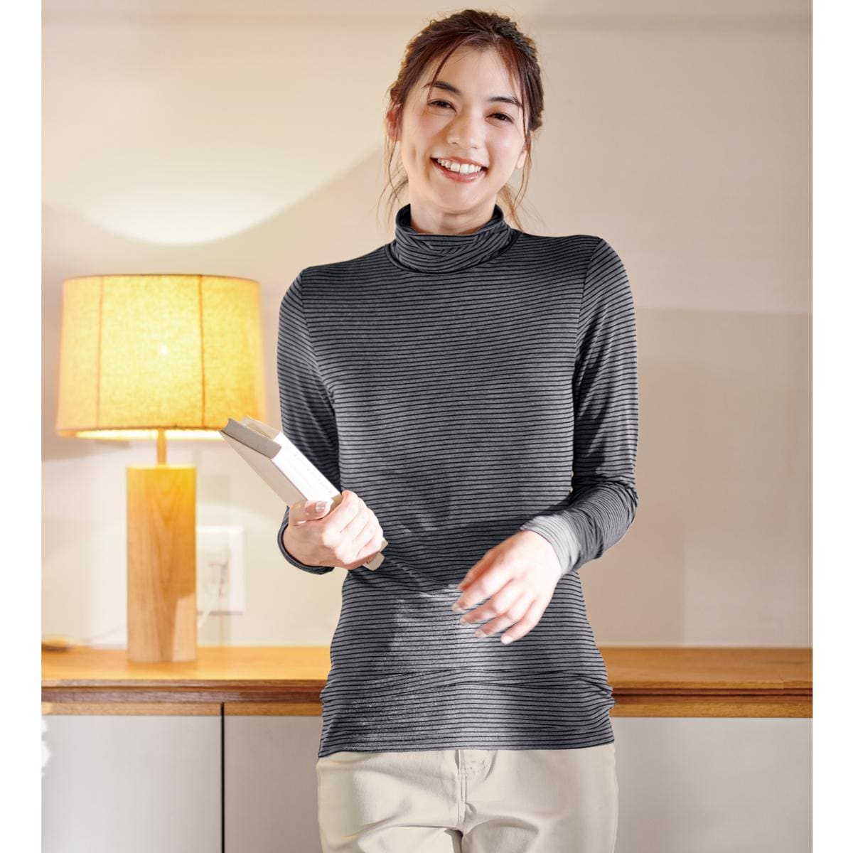 -お買い得ポイント-重ね着しても着ぶくれせずにすっきりあたたか。しなやかなフィット感と暖かさが魅力です。-デザイン-重ね着しやすいくしゅっとなるルーズネック。さりげない花柄の新柄も登場!!-素材特徴-・身体から出る汗などの水分を吸収して発熱するハイテク素材。さらに、繊維の中に含まれた竹炭の成分から、遠赤外線を放射。さらに暖かく進化。・静電防止機能付きでパチパチを軽減。・しなやかなフィット感と暖かさを実現。・汗をすばやく吸って乾かすので、ドライな着用感。