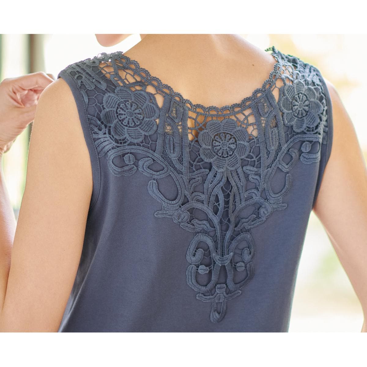 重ね着に便利な胸元レースタンクトップ(S~3L)(綿100%・洗濯機OK)