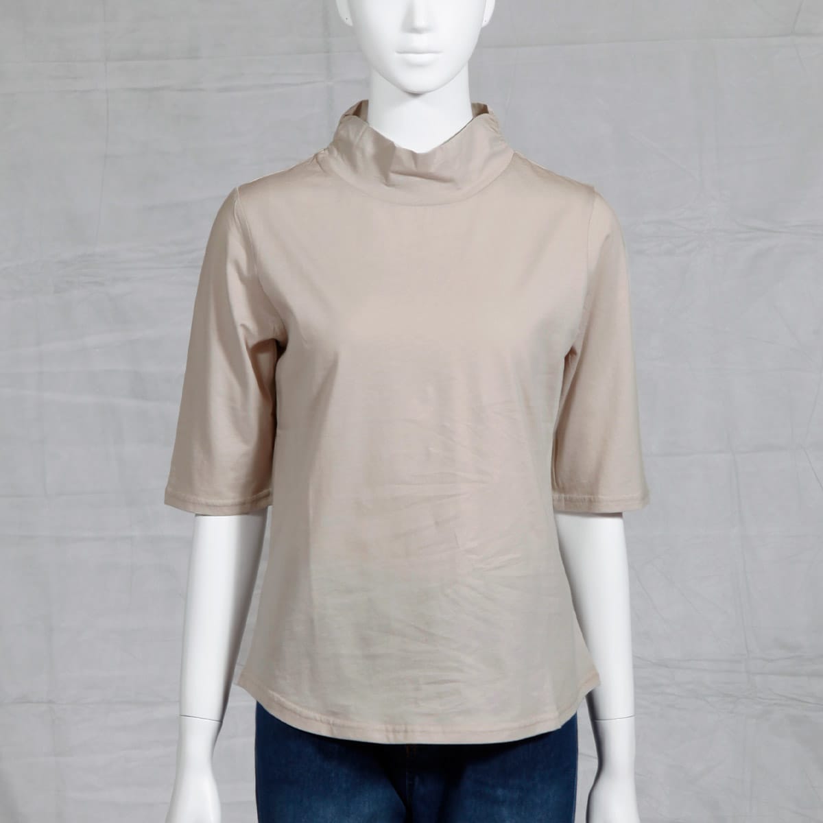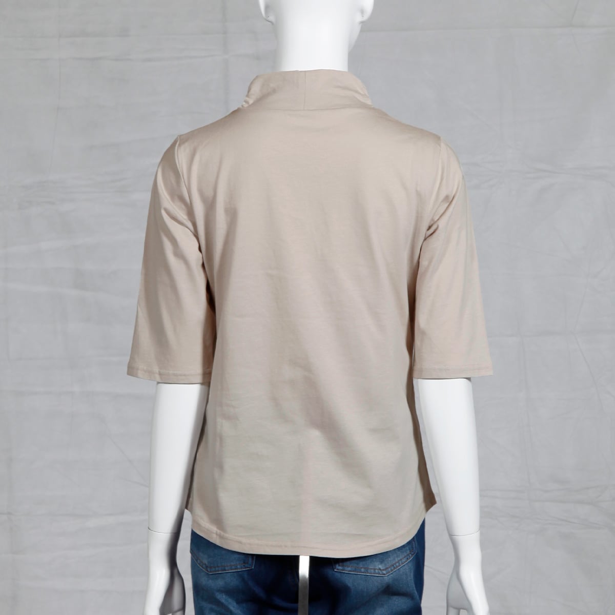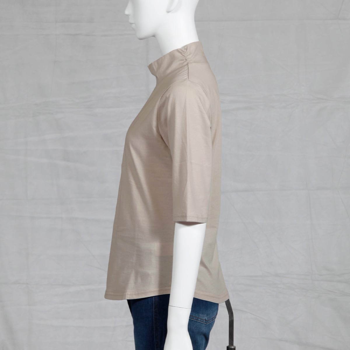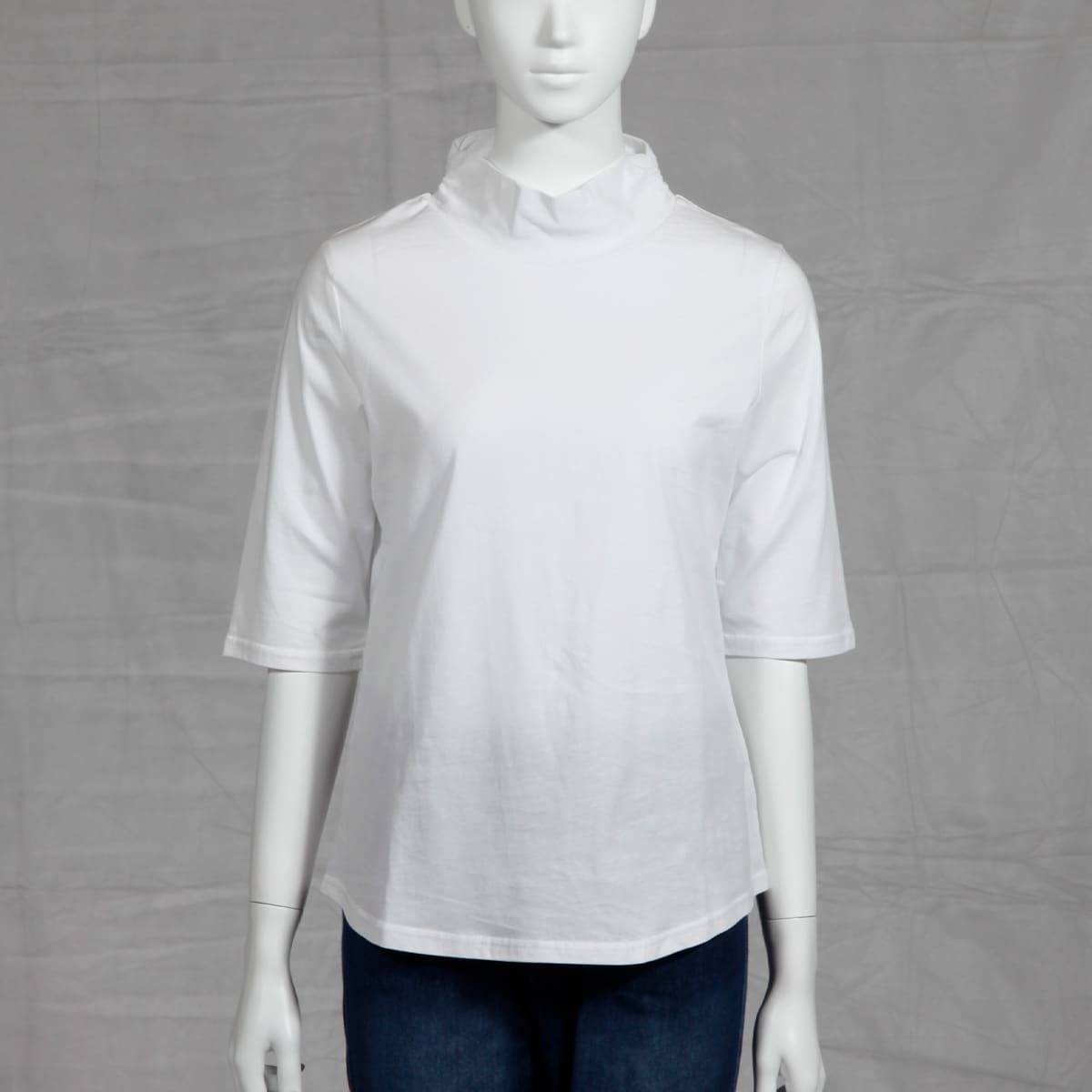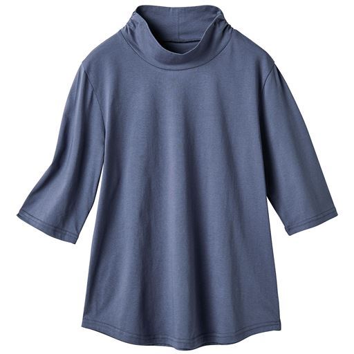 ハイネックTシャツ(綿100%・洗濯機OK)/やや長めの袖丈
