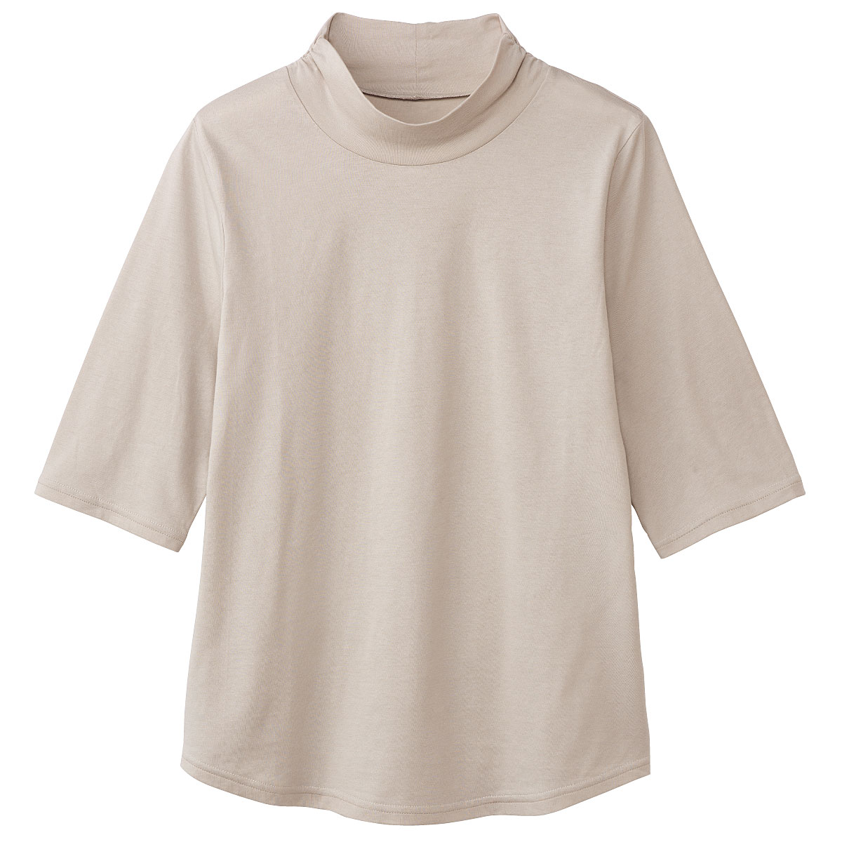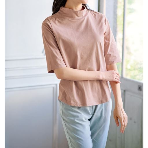 -お買い得ポイント-シンプルなのにキレイ見え!デイリーに着たい、綿100%トップスです。-デザイン-やや長めの袖丈でロングシーズン使いやすく、二の腕もさりげなくカバーしてくれます。1枚でも、カーデのインナーとしてレイヤードでも使えるので、コーデの幅がぐっと広がります。程よい高さのハイネックが日差しから首まわりを優しく守ってくれます。-素材特徴-ソフトな風合いときれいな表面感が魅力。肌ざわりのやさしさにこだわった綿100%カットソーです。