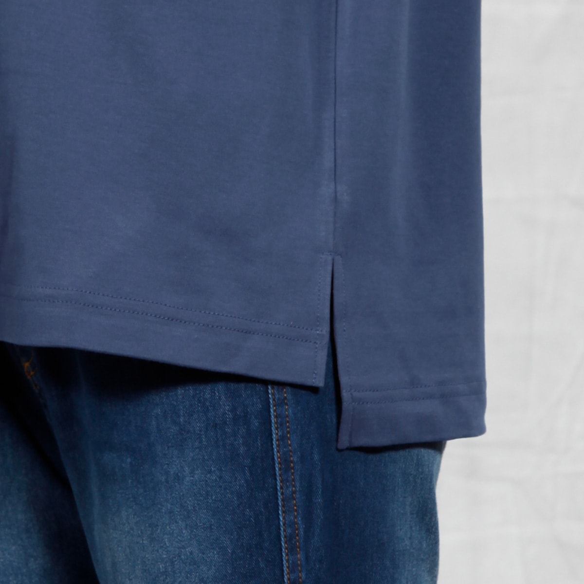 着る人の体型をきれいに見せる絶妙シルエットが注目ポイントです。程よく艶があり、やわらかな肉厚コットンで、1枚でも安心して着られます。