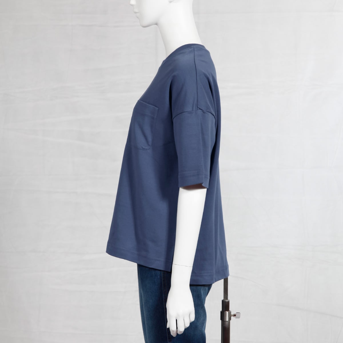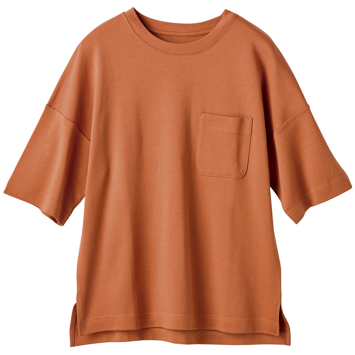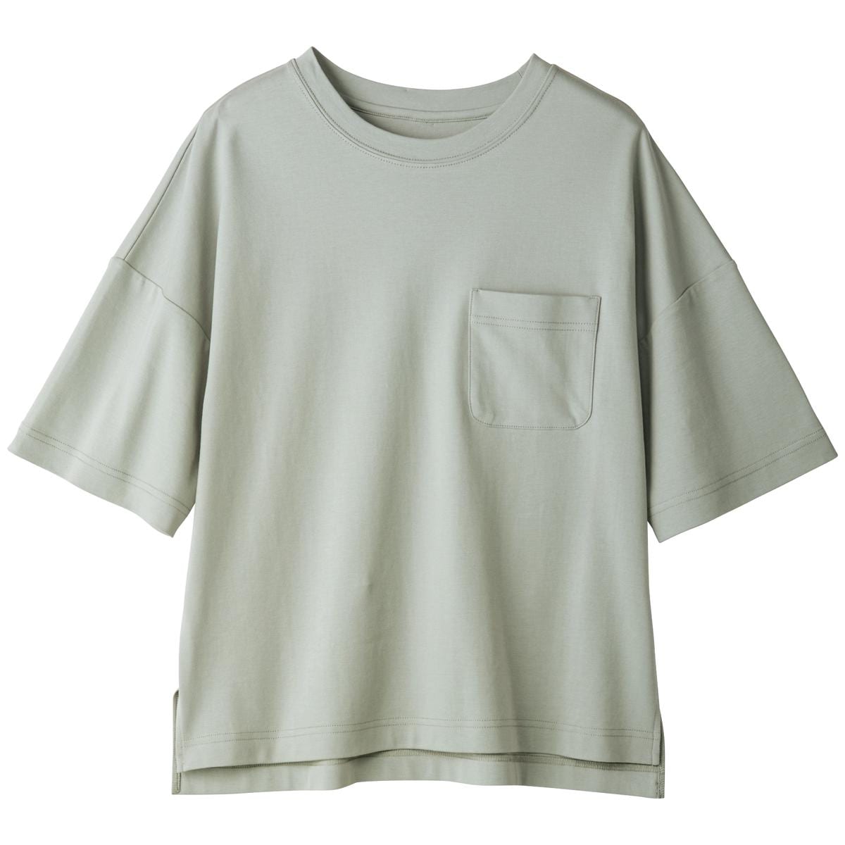 -お買い得ポイント-大人の女性の体型を計算しつくした絶妙なゆるシルエット。体のラインを拾いにくく、1枚で着こなしがサマになるクルーネックTシャツです。-デザイン-詰まった衿元と大きめポケットがメンズライクな雰囲気を、ドロップショルダーや両サイドのスリットがフェミニンな今どき感を演出します。袖をロールアップすると旬のスタイルに。-素材特徴-肌触りがなめらかな綿100%の生地を使い、程よく伸びもあって着る人のボディラインをきれいに見せてくれます。