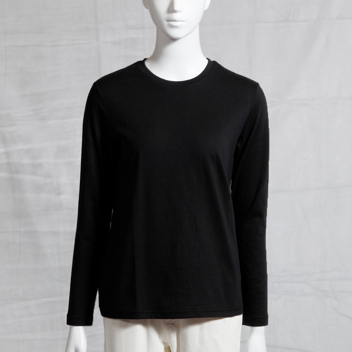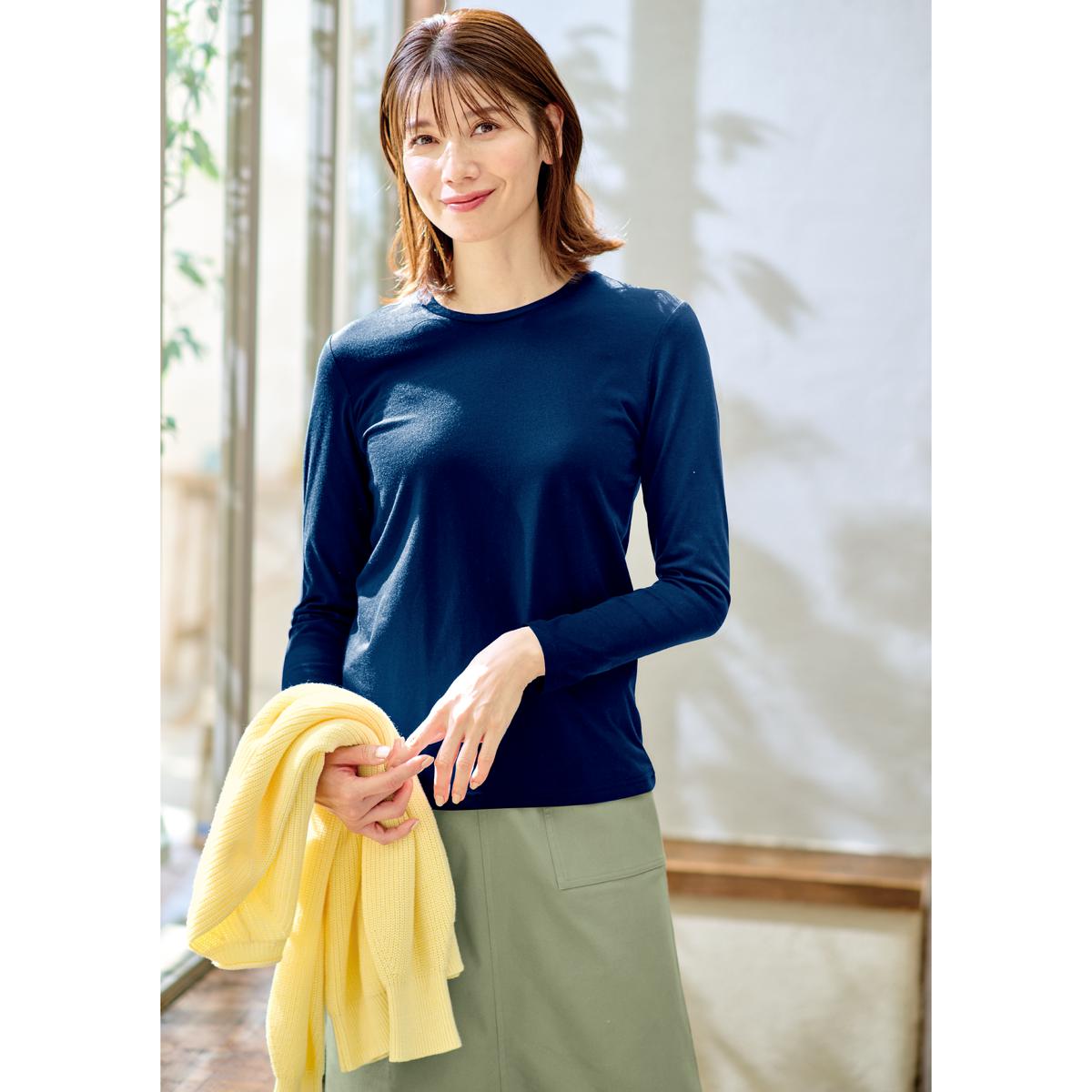 シンプルクルーネックTシャツ(長袖)(洗濯機OK)