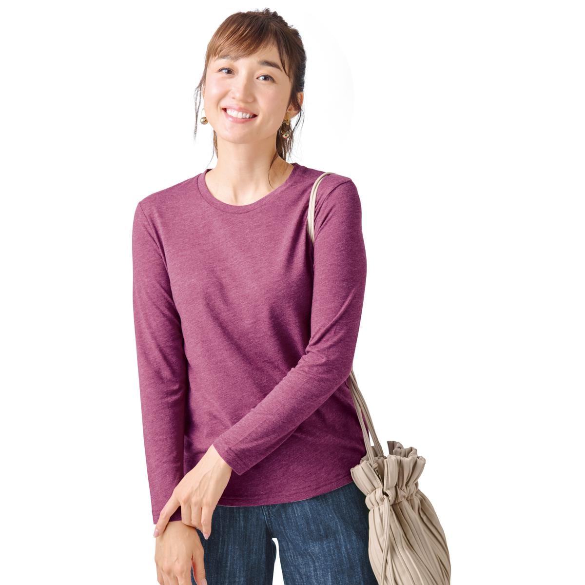 シンプルクルーネックTシャツ(長袖)(洗濯機OK)