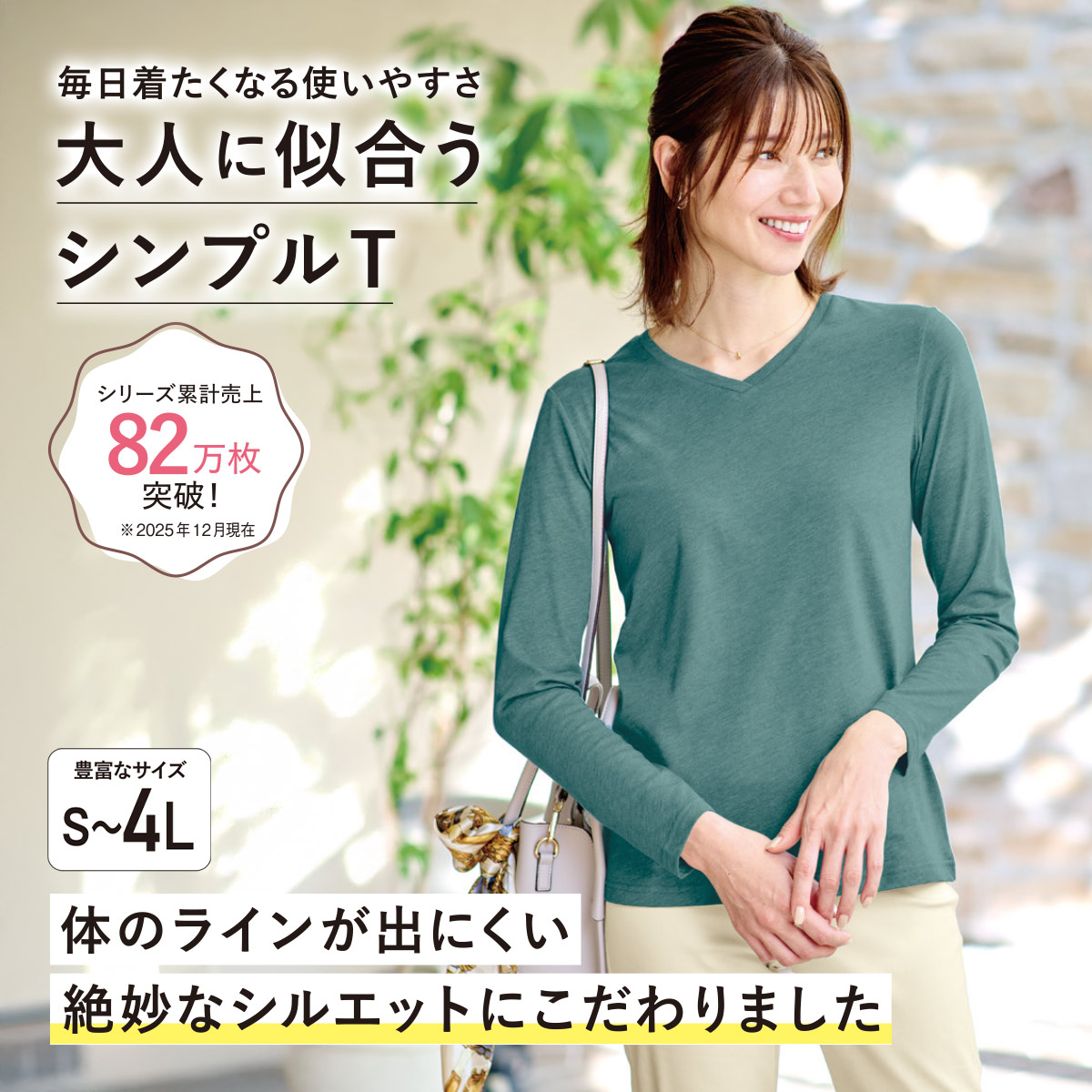 シンプルVネックTシャツ(長袖)(洗濯機OK)