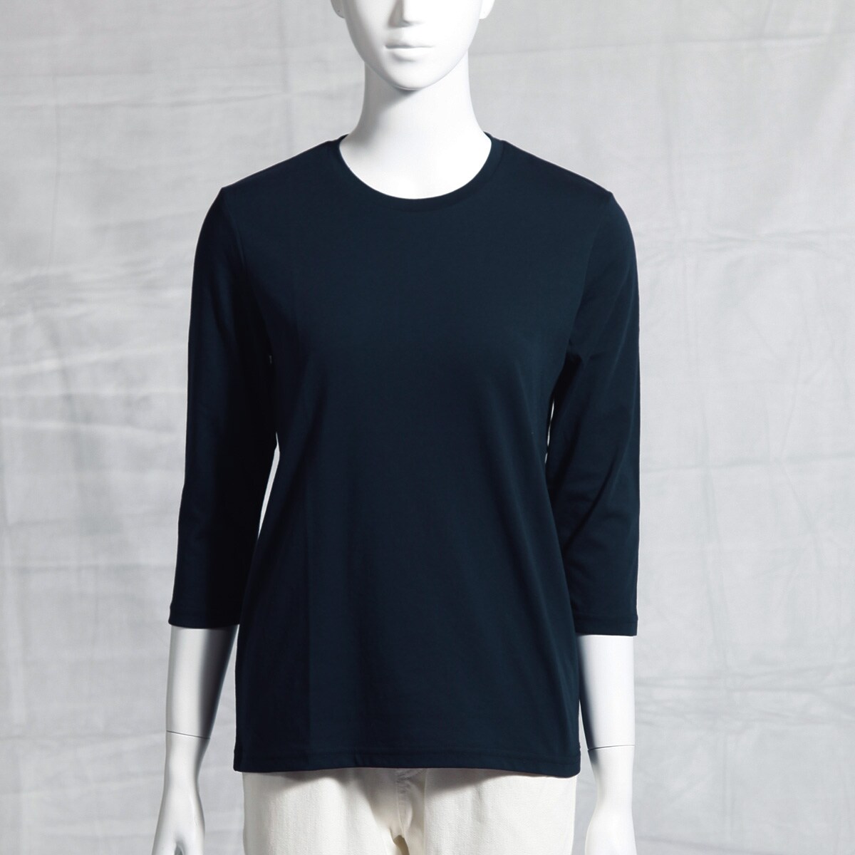 シンプルクルーネックTシャツ(7分袖)(洗濯機OK)