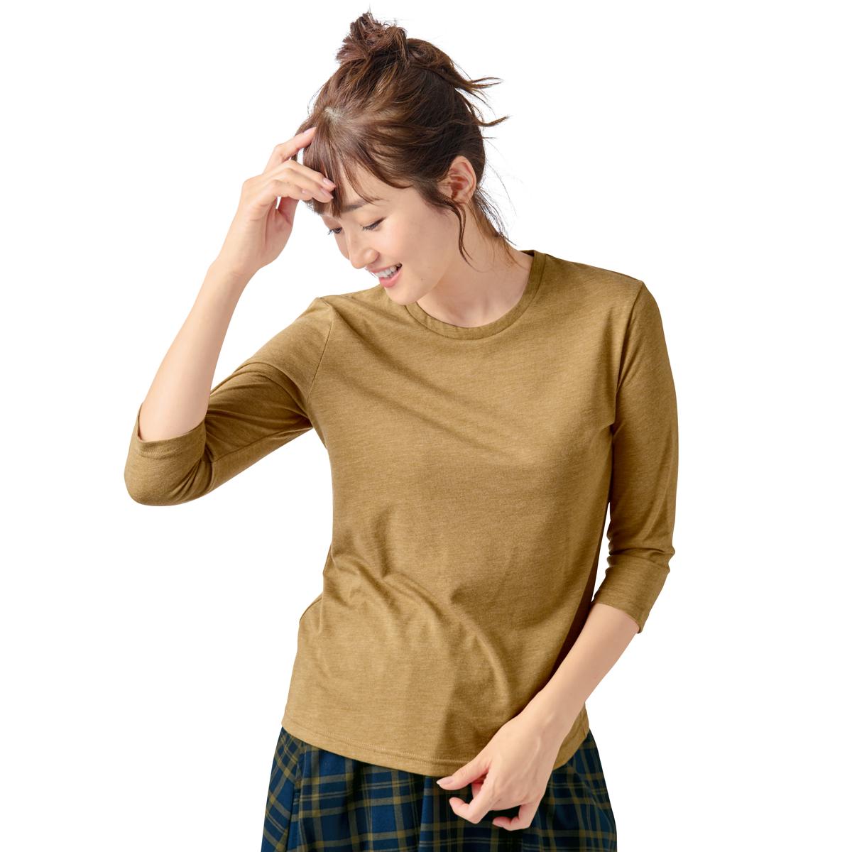 シンプルクルーネックTシャツ(7分袖)(洗濯機OK)