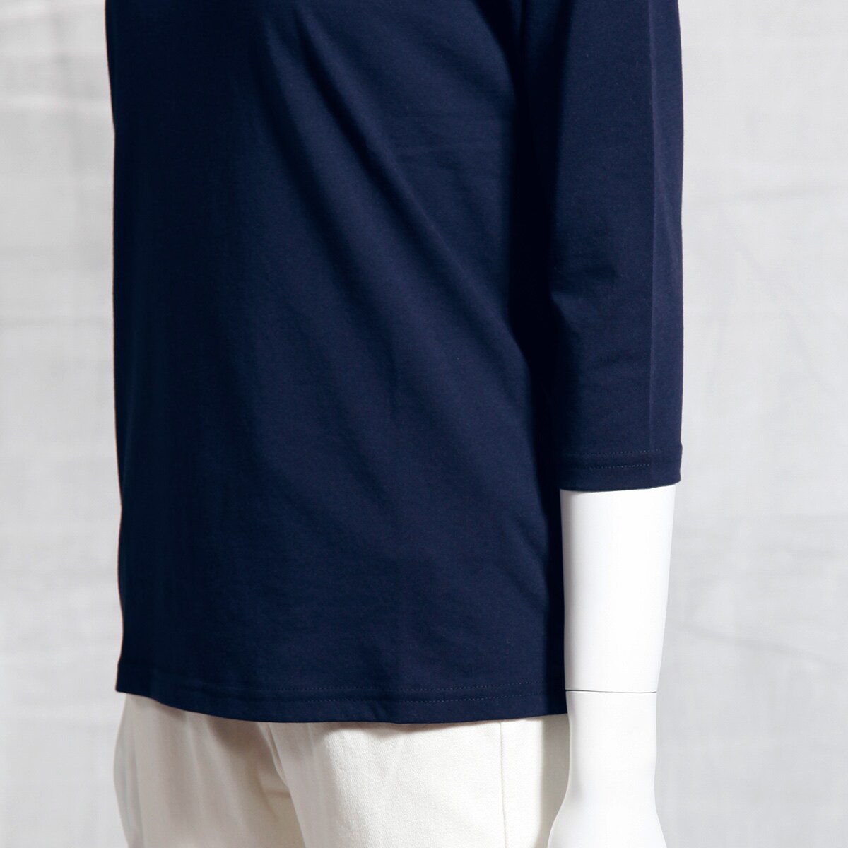 セットインスリーブ 袖がもたつきにくく重ね着もすっきり*画像はクルーネック(長袖)です。