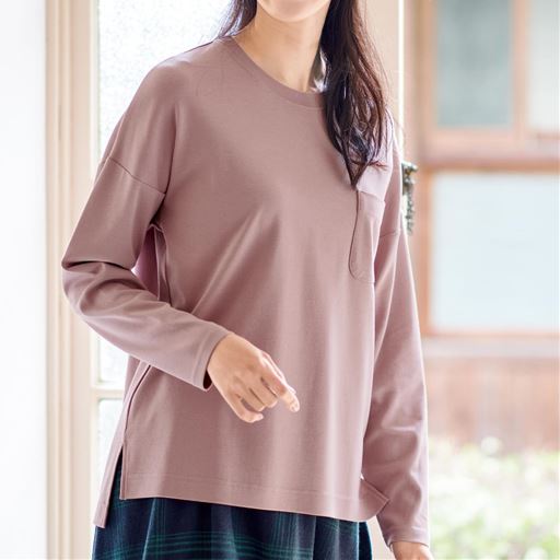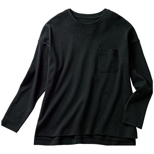 -お買い得ポイント-着たときのシルエット、肌ざわり、見た目の美しさ1枚で着てもサマになるディテールにこたわりました-デザイン-胸ポケット付きのベーシックなデザインながら、ゆるっと着こなせるドロップショルダーや、抜け感をつくる脇スリットと前後差のある裾で、1枚でもこなれて見えます-素材特徴-もっちり肉厚ながら伸縮性と程よい光沢感があり、しなやかな肌ざわりで快適な着心地洗濯機でも手軽に洗えて、扱いラク♪