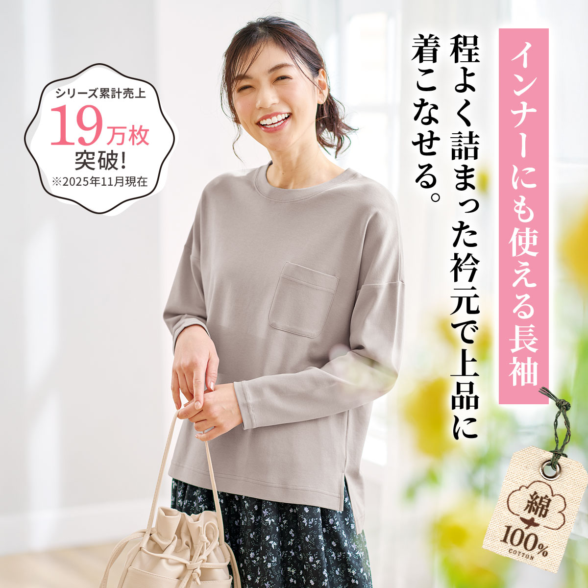 クルーネックTシャツ(長袖)(綿100%・洗濯機OK)