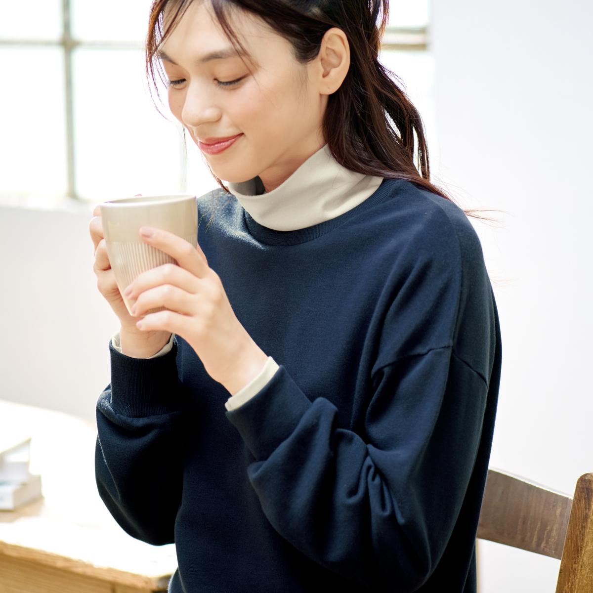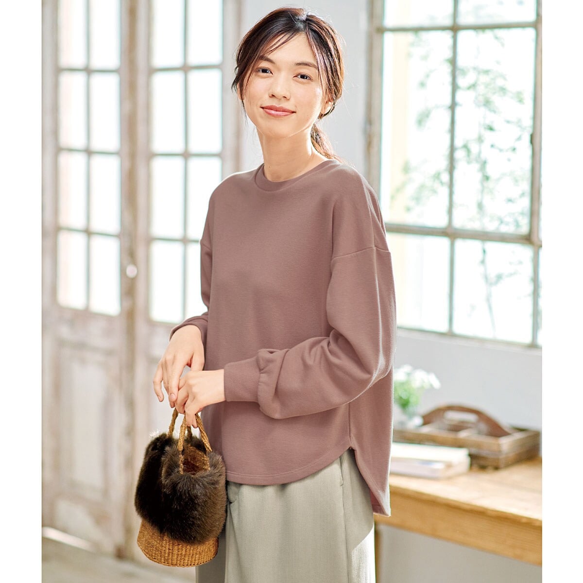 -お買い得ポイント-お出かけにもリラックスタイムにも着回し上手なおしゃれスウェット。肌寒くなるこれからのシーズンに、大活躍すること間違いなしの1枚です。-デザイン-ドロップショルダーと前後差のあるラウンド裾がこなれ感を演出。少しふんわりとした袖で優しい印象に。-素材特徴-肌側は綿100%パイルでふんわり。毎日をほっと過ごせるおしゃれなスウェット。