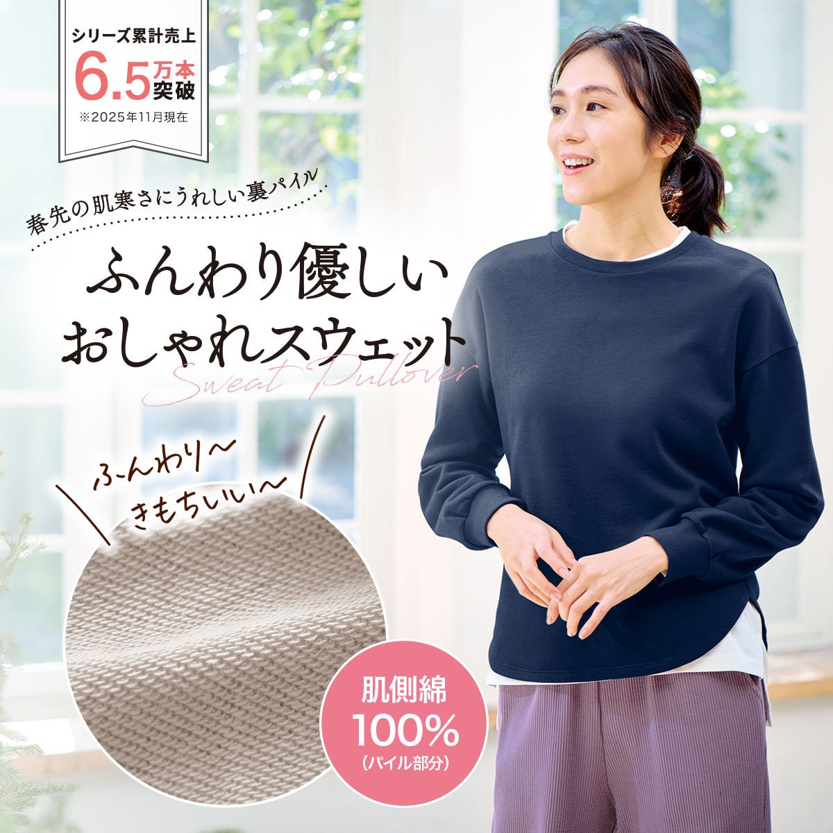 おうちでもそのままご近所も!ここちよくて素敵なふだん着♪肌側コットンでふんわり!着心地さらりとした綿混スウェット!
