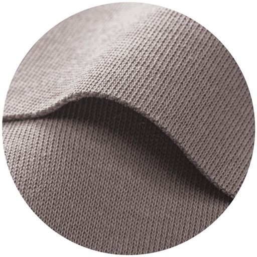 グレイッシュブラウン 生地拡大きれいな微光沢でカジュアル感を抑えた綿100%素材。程よい厚みで伸縮性があり、しなやかに肌に寄り添います。
