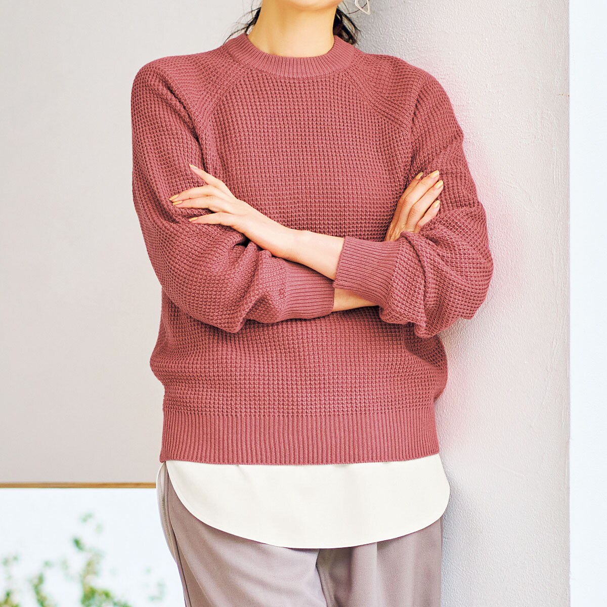 着たときのシルエット、肌ざわり、見た目の美しさ、1枚でサマになるディテールにこだわりました。レイヤードスタイルで裾をのぞかせてもかわいい深めのラウンドヘム。