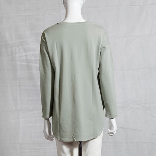 -お買い得ポイント-レイヤードスタイルにも映える深めのラウンドヘム-デザイン-前後差のあるラウンドヘムと詰まりすぎないラウンドネックで、1枚でも重ね着のインナーとしても着まわし力ばっちり◎-素材特徴-ふんわり厚手のスムース生地微光沢の綿100%でなめらかな着心地です。