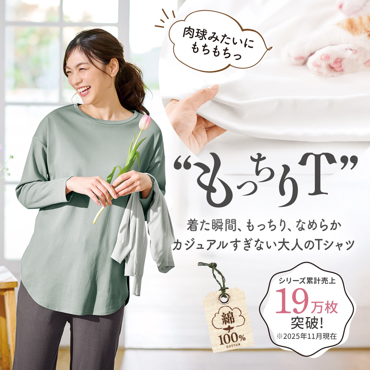 微光沢感と適度なハリのあるもっちり肉厚生地綿100%のやさしい肌ざわり