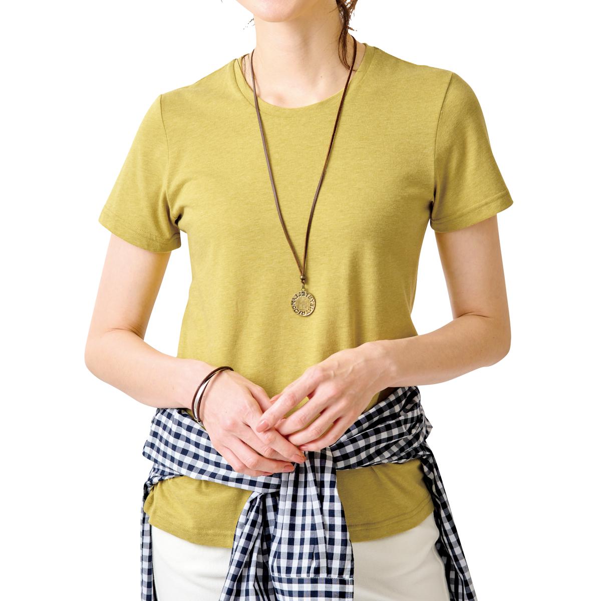 -お買い得ポイント-すっきり見えるのにピタピタ感もムチムチ感もなく、すっきり着られる絶妙なシルエットのTシャツ。-デザイン-詰まりすぎず開きすぎでもないネックラインにして、きちんと感を持たせました。着丈は、ウエストアウトが決まって、インにしてももたつかない絶妙な丈感。袖は、二の腕の一番気になる部分をカバーして腕を細見せ。-素材特徴-綿混素材のやさしい肌触りが魅力です。