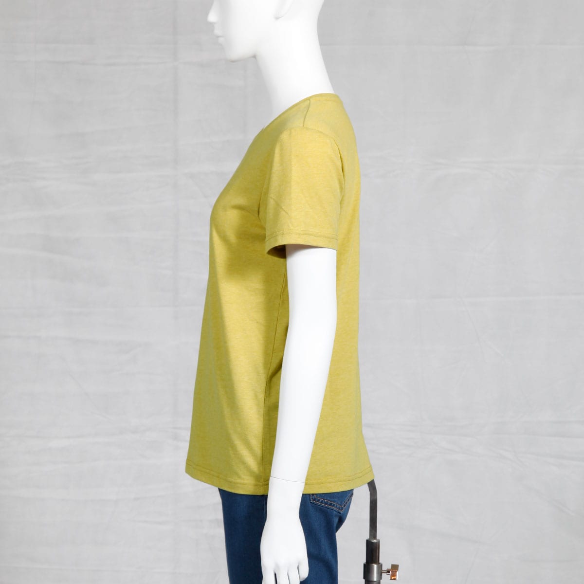 詰まりすぎず開きすぎでもないネックラインにして、きちんと感を持たせました。すっきり見えるのにピタピタ感もムチムチ感もなく、すっきり着られる絶妙なシルエットのTシャツ。