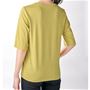 -お買い得ポイント-シンプルなTシャツは何枚あっても使えるアイテム☆-デザイン-デコルテをきれいに見せるネックラインで自信が持てるTシャツです。後ろ衿ぐりはパイピングでしっかり補強。1枚で着ても、重ね着をしてもオシャレ♪5分袖が二の腕をカバーし、カジュアルになりすぎないので大人の女性にもおすすめ。-素材特徴-肌なじみのよい優しい着心地の綿混素材を使用しています。