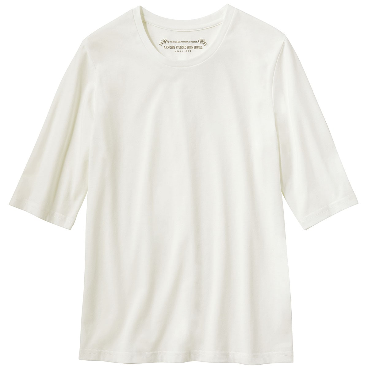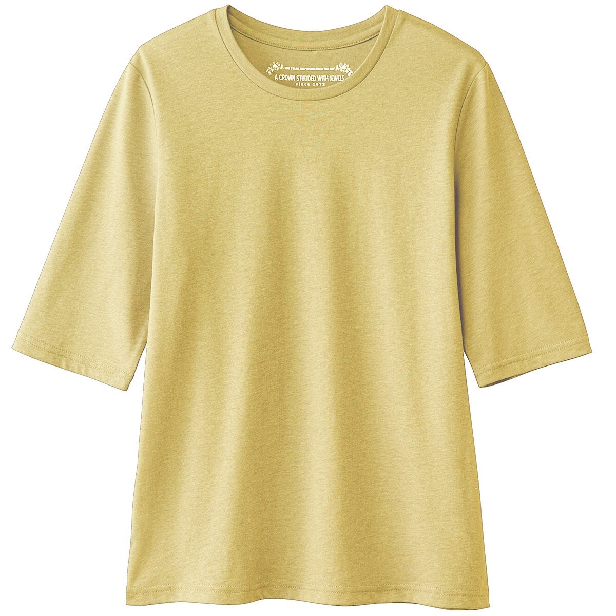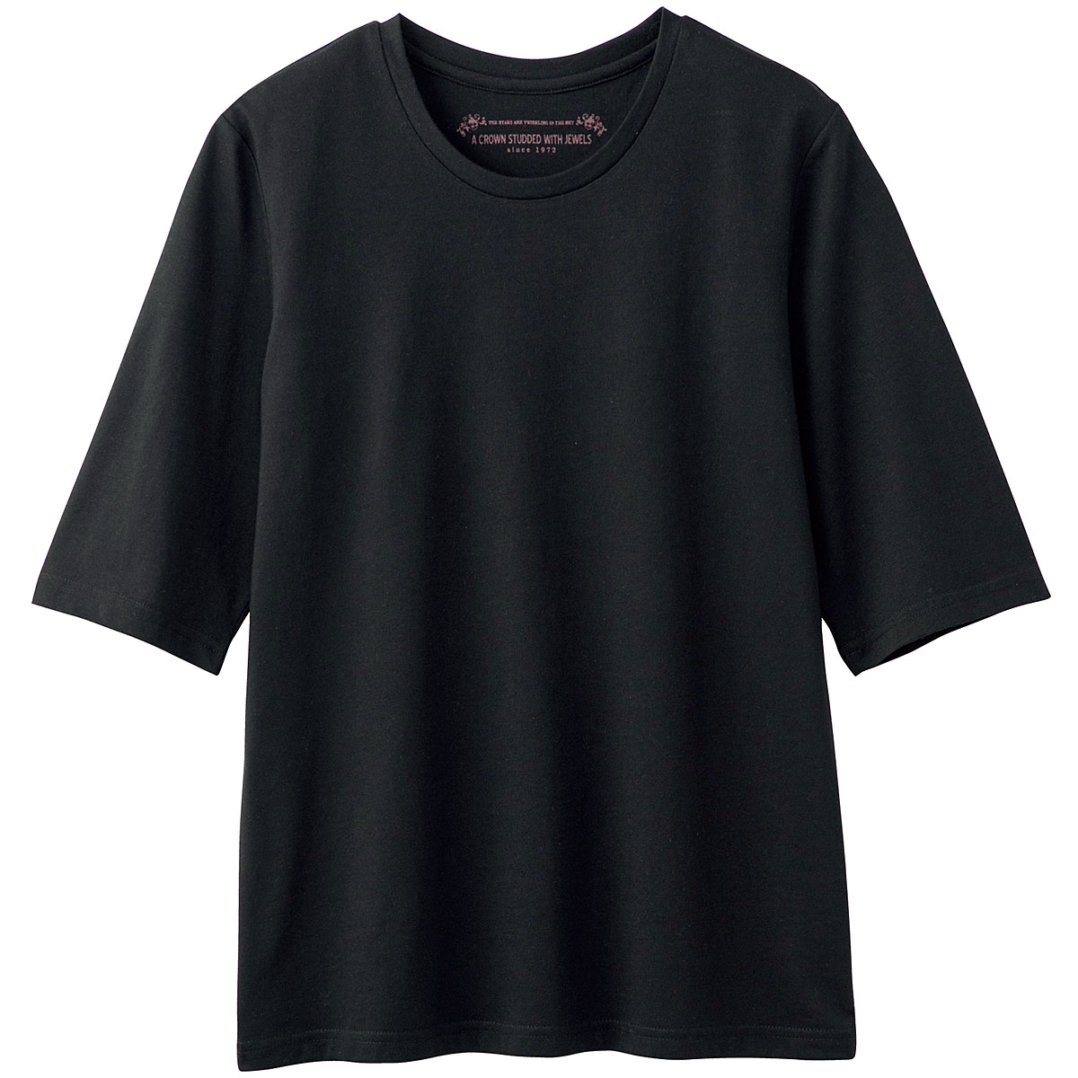 シンプルクルーネックTシャツ(5分袖)(洗濯機OK)