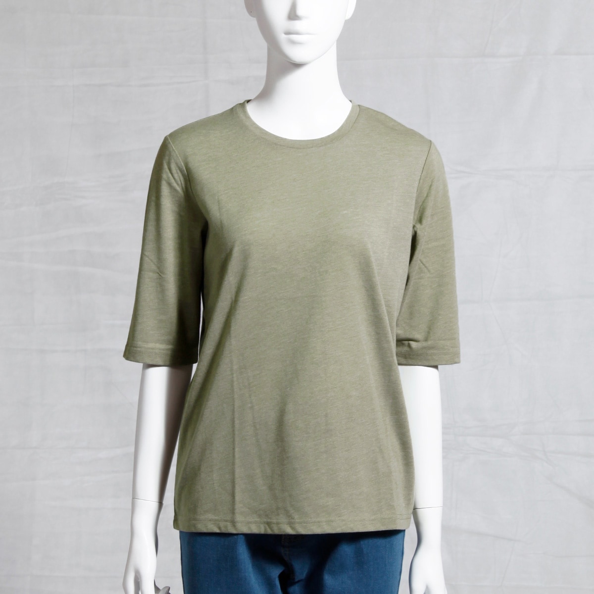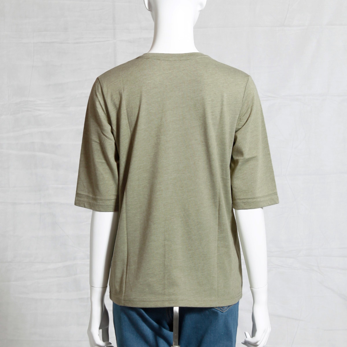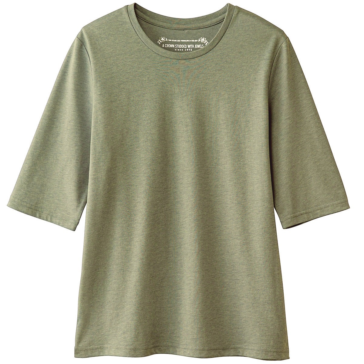 シンプルクルーネックTシャツ(5分袖)(洗濯機OK)