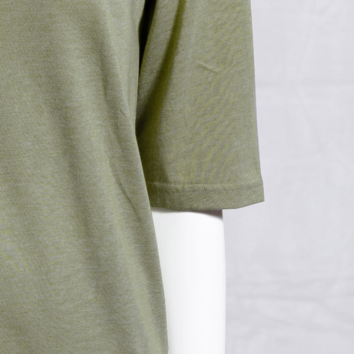 これまでtシャツは綿100%にこだわってきましたが、こちらは生地が気に入って、そで丈や襟の形違いで何枚も購入しています。スッキリした杢グレーがオンオフで着られてボトムやアウターの色も選ばず一番重宝なので、こうしたベーシックなtシャツの色展開には必ず入れて欲しいです。