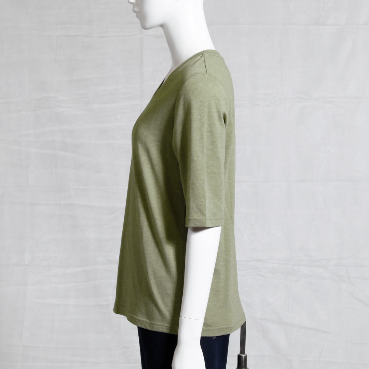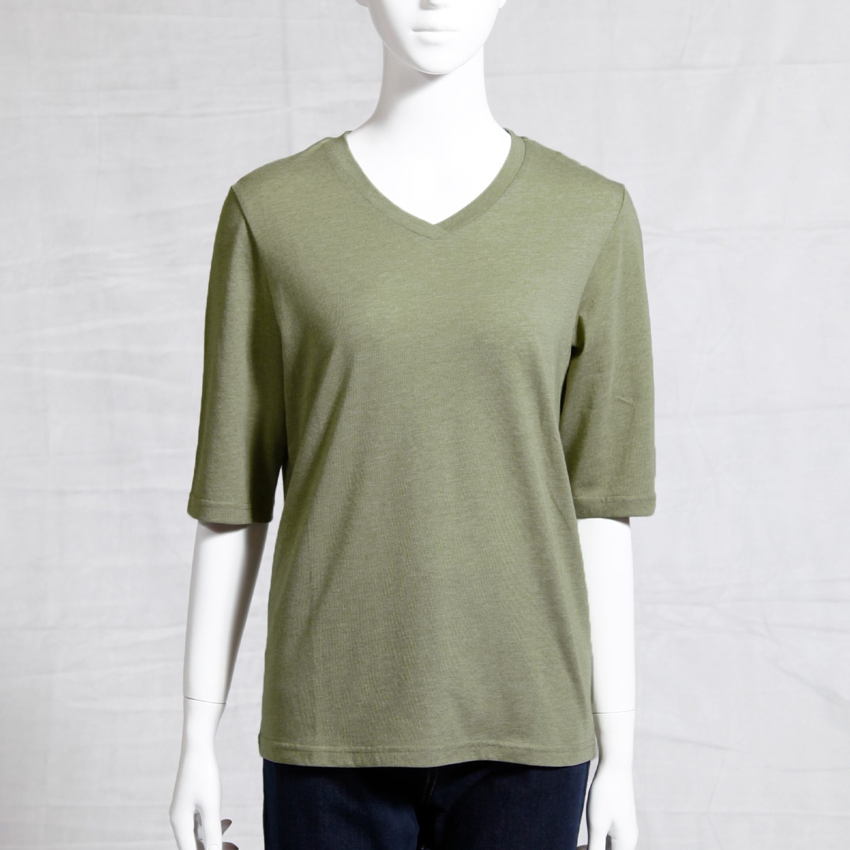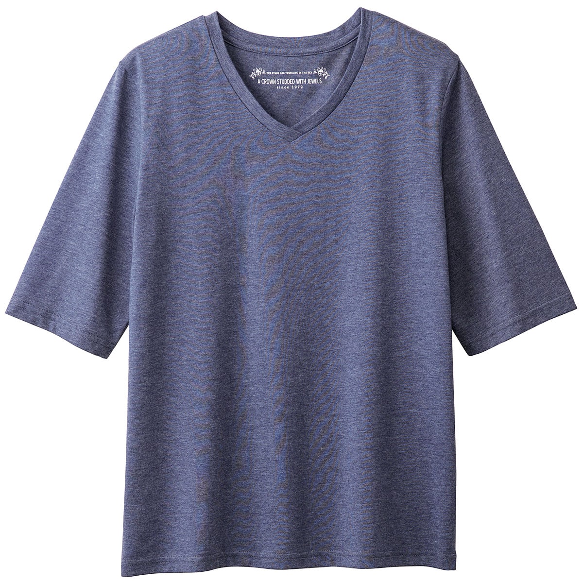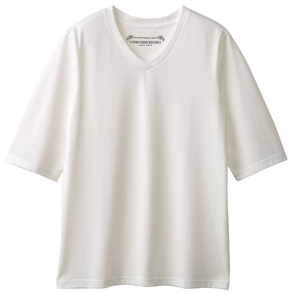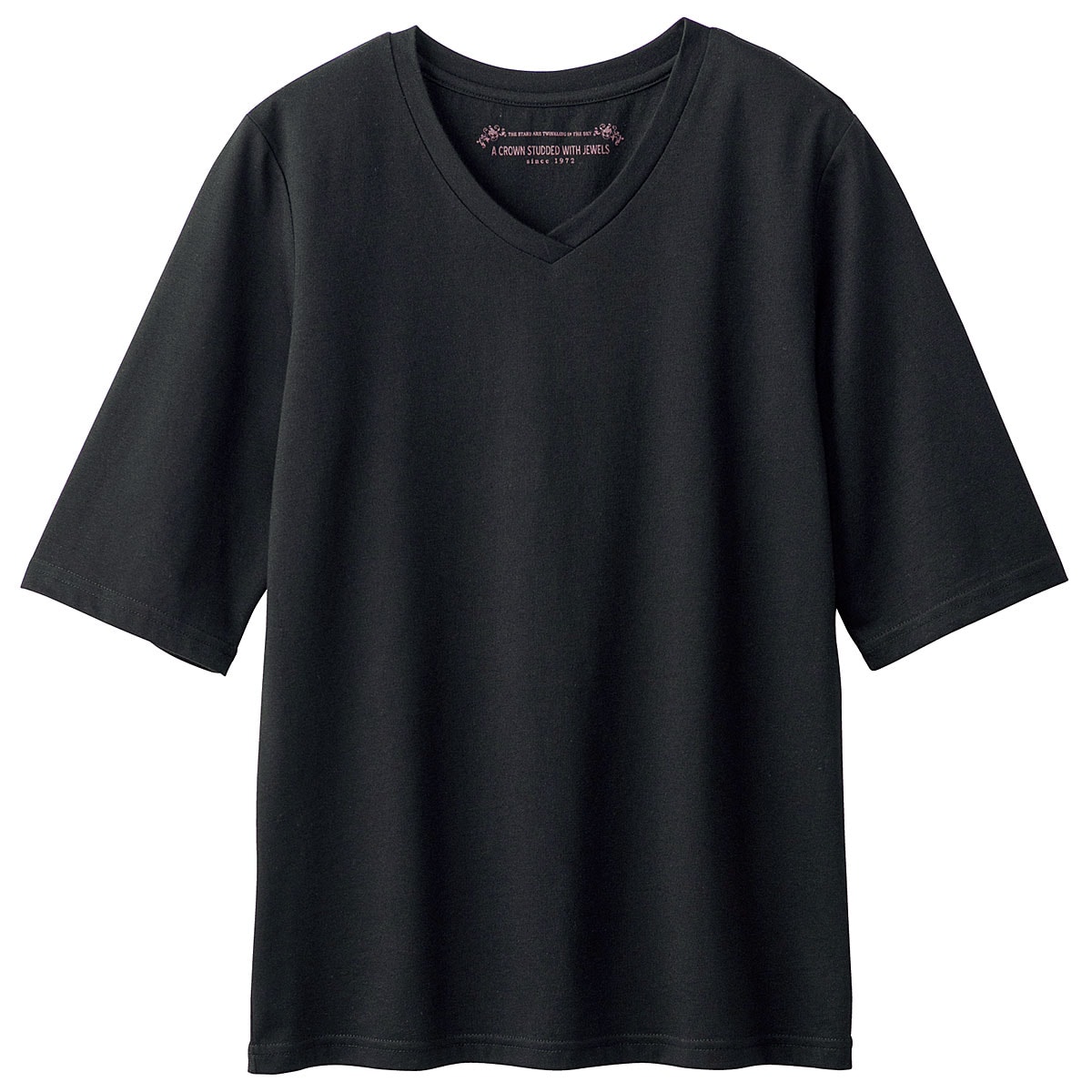 シンプルVネックTシャツ(5分袖)(洗濯機OK)