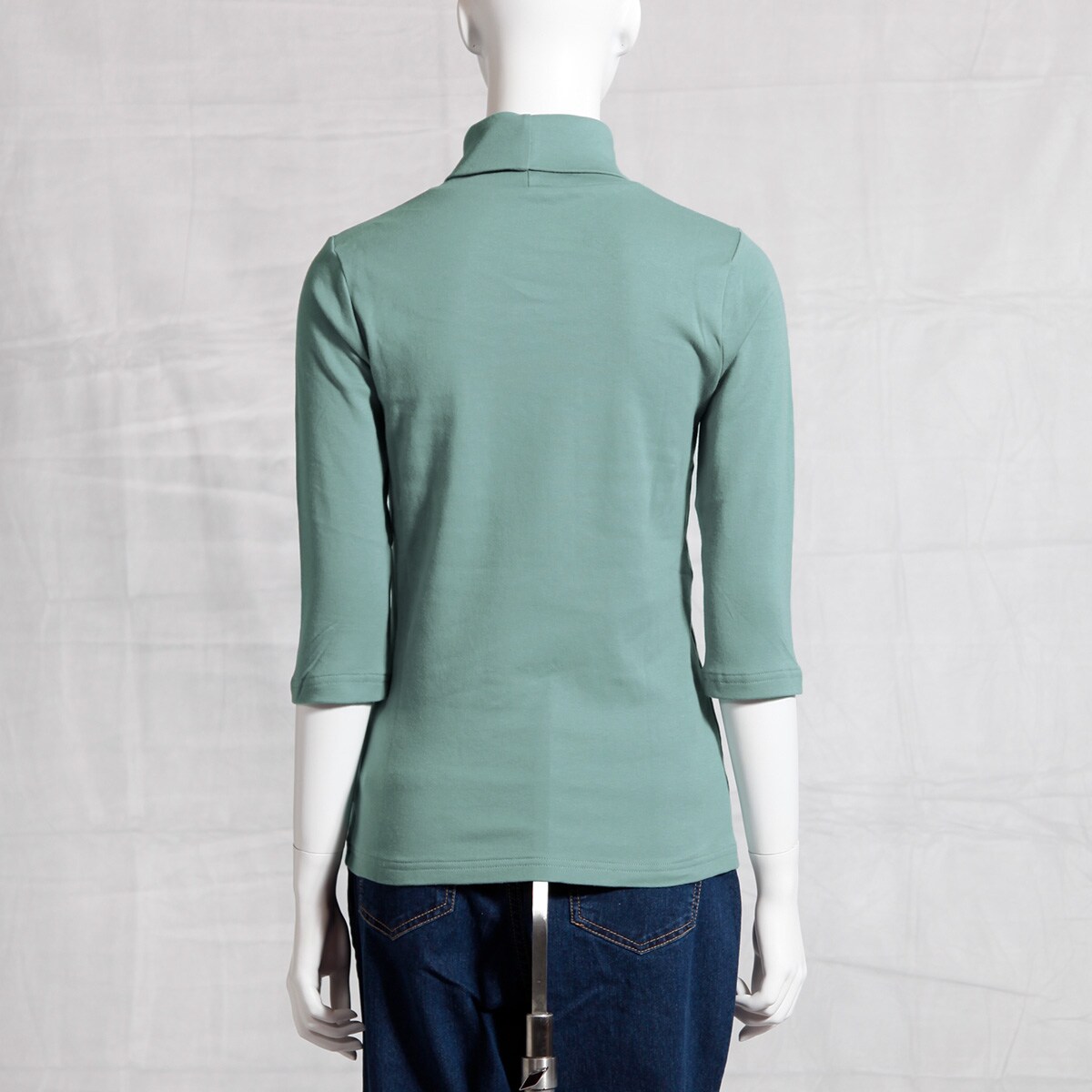 生地も縫製もしっかりしておりお値段以上に感じました。タートルネックのTシャツで七分袖というのがなかなかないので、あって助かりました!