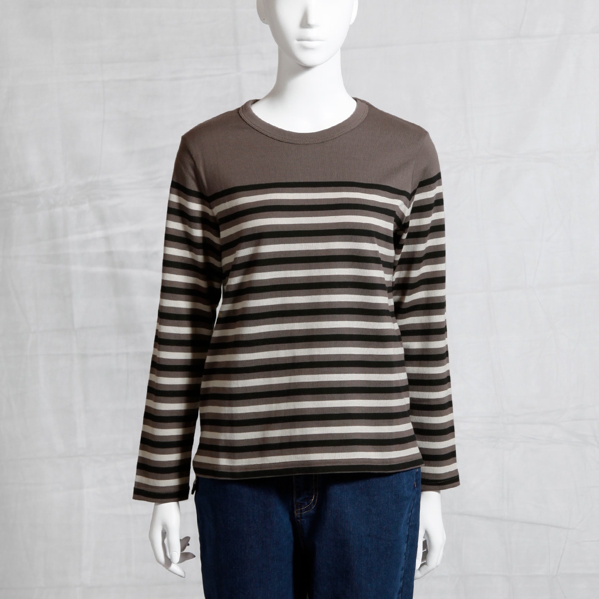 クルーネックプルオーバーボーダー(長袖)(洗濯機OK)