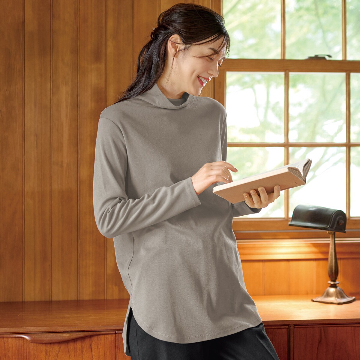 ラウンドヘムタートルネック長袖Tシャツ(綿100%・洗濯機OK)