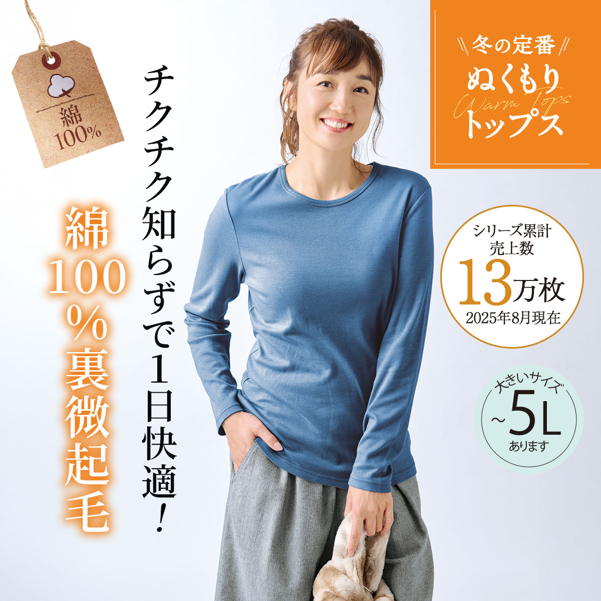 【冬の定番ぬくもりトップス】チクチク知らずで1日快適!綿100%裏微起毛Tシャツ