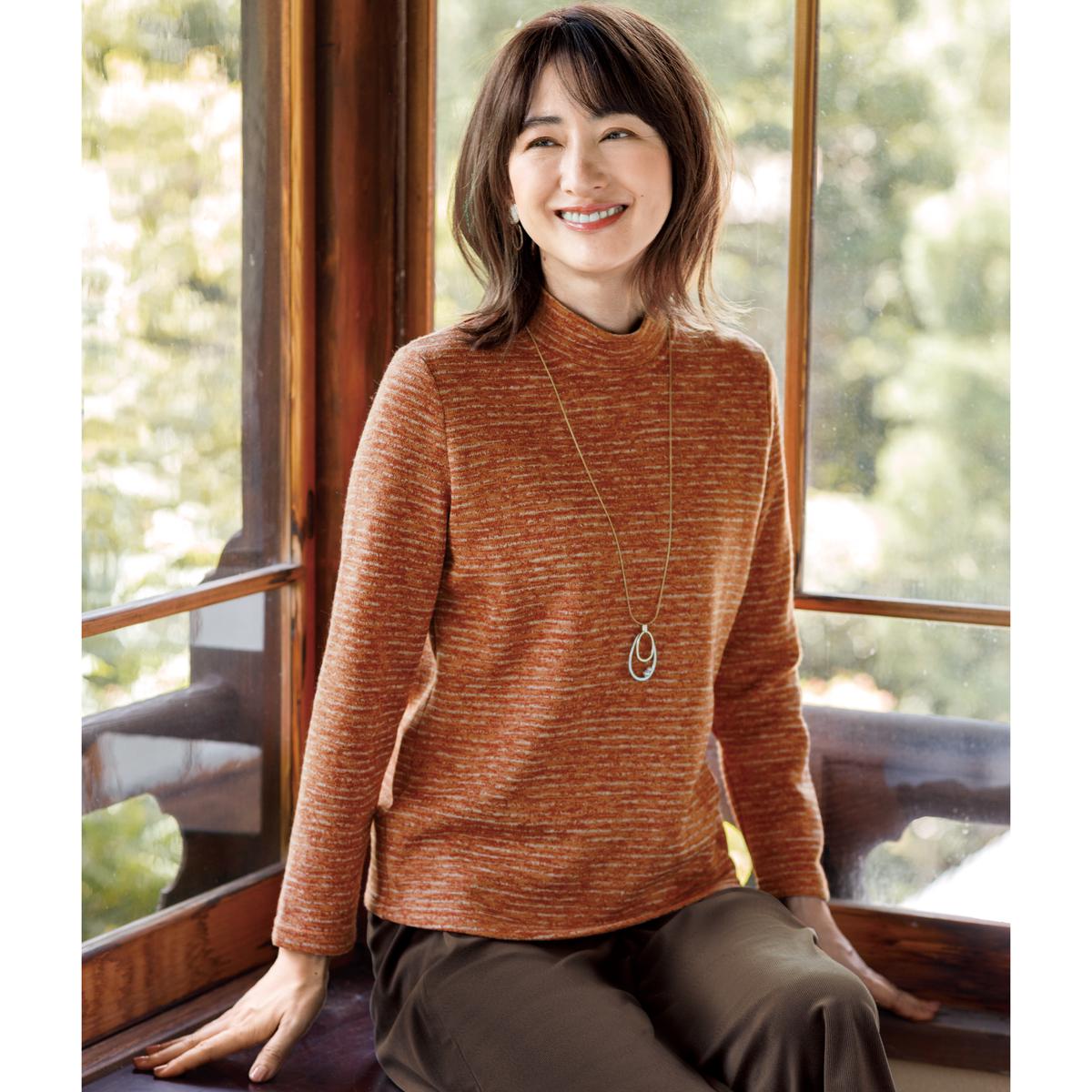 杢調ニットのようなあたたかみのある風合いきれいな色の細ボーダー柄も魅力的