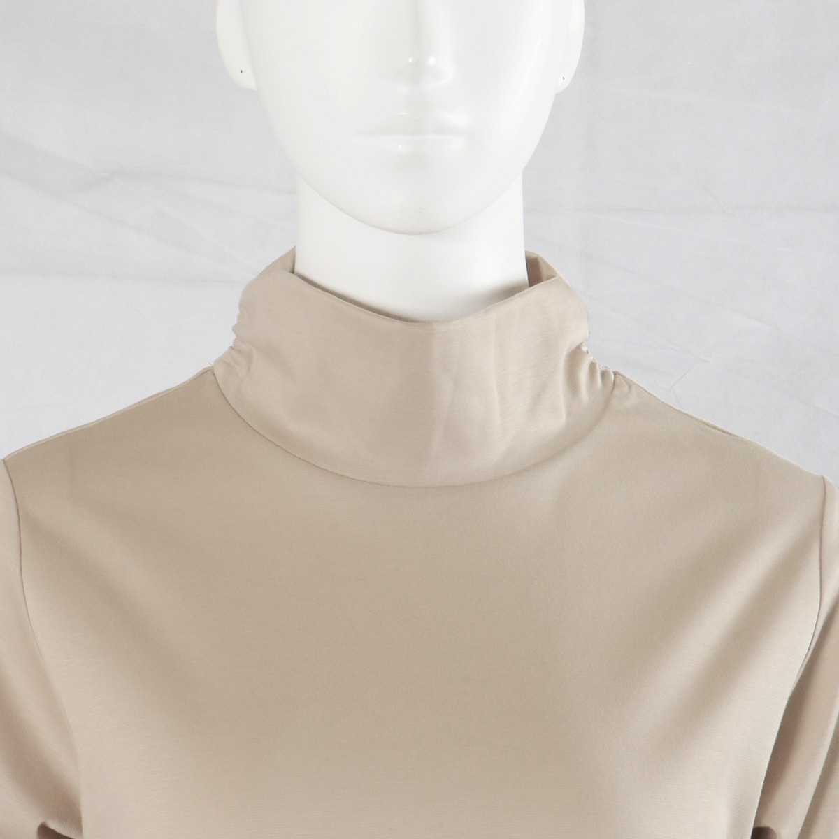 -お得ポイント-シルクのような風合いと美しい光沢、シックなカラーで大人に似合うTシャツを作りました。-デザイン-首元に程よいゆとりをもたせたタートルネック。衿脇に入れたギャザーできれいな立ち上がりをキープできます。-素材特徴-ひとつひとつ丁寧に摘み取られたインド南部産の上質な綿を用いたカットソー。ハリとコシがあり、シワになりにくく、上品な光沢と滑らかな肌触りが特徴です。