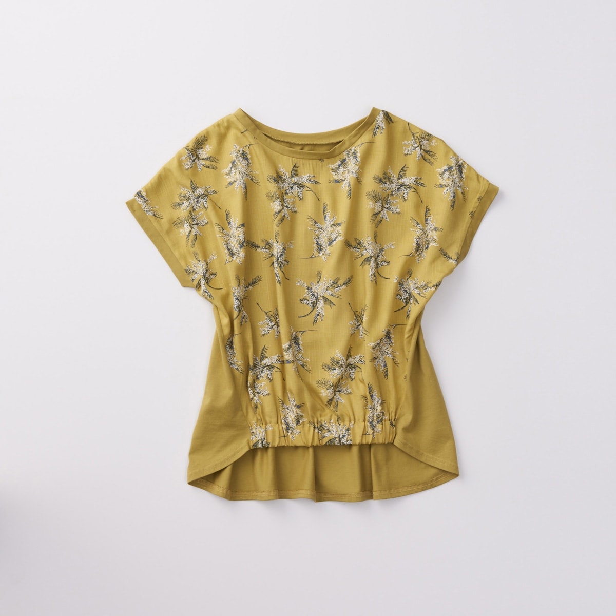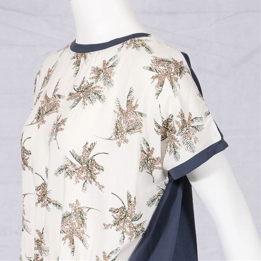 -お買い得ポイント-フロントの花柄プリントが華やかな雰囲気を醸し出しています。-デザイン-花柄プリントと無地の切り替えにすることで、派手になり過ぎず大人にぴったりな華やかさに。前裾をゴムで絞り、切り替えを前に寄せているのですっきりとバランスのいい着こなしが叶います。-素材特徴-無地部分はなめらかな綿100%素材、花柄部分はレーヨン100%と2枚使いとなっています。