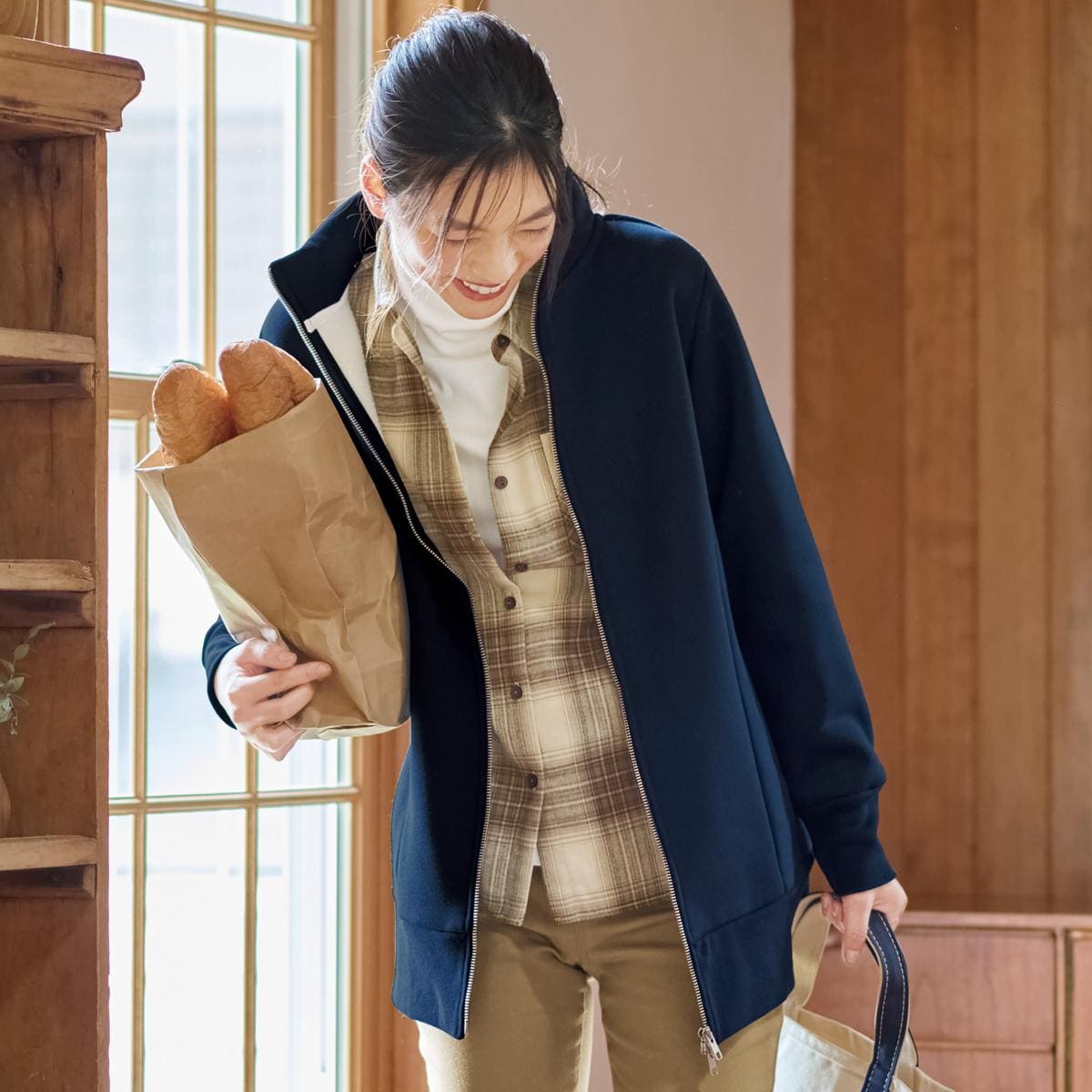 腰まわりまで包むロング丈なのでアウター代わりにもおすすめです。