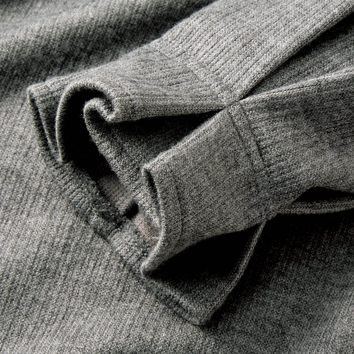 うっすらと起毛して温かみのある細リブのプルオーバー。