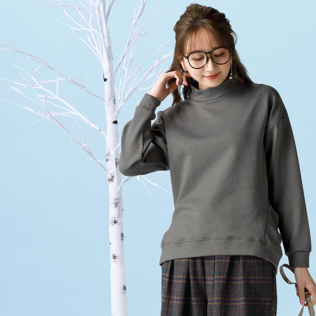 -お買い得ポイント-かさばらずにあったか寒い日に嬉しい機能付き-デザイン-首元を程よくカバーするハイネック両サイド裾のタックがふんわりとお尻まわりを包みこみ、さりげなく体型カバーしてくれます。-素材特徴-蓄熱保温・吸汗速乾機能付きでムレにくく、ぬくもりをキープする裏起毛素材。抗菌防臭機能付きなので部屋干しもOK。静電防止機能付きでパチパチしにくいのも嬉しいポイント。
